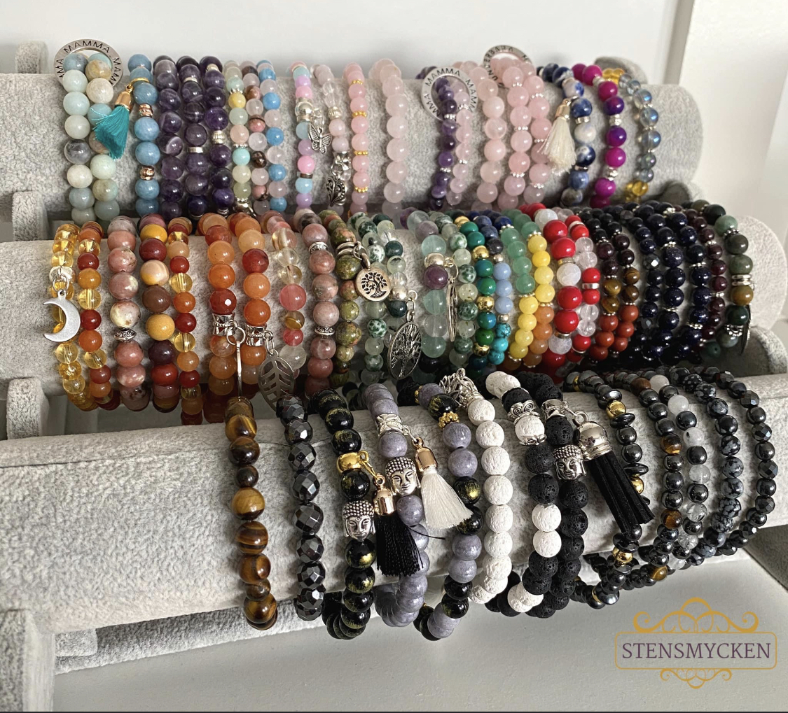 Unika och handgjorda stenarmband med kraftfulla halvädelstenar från hela världen.